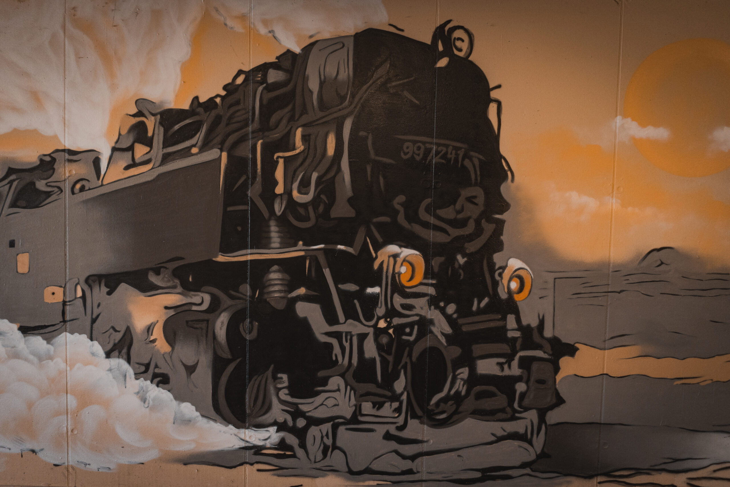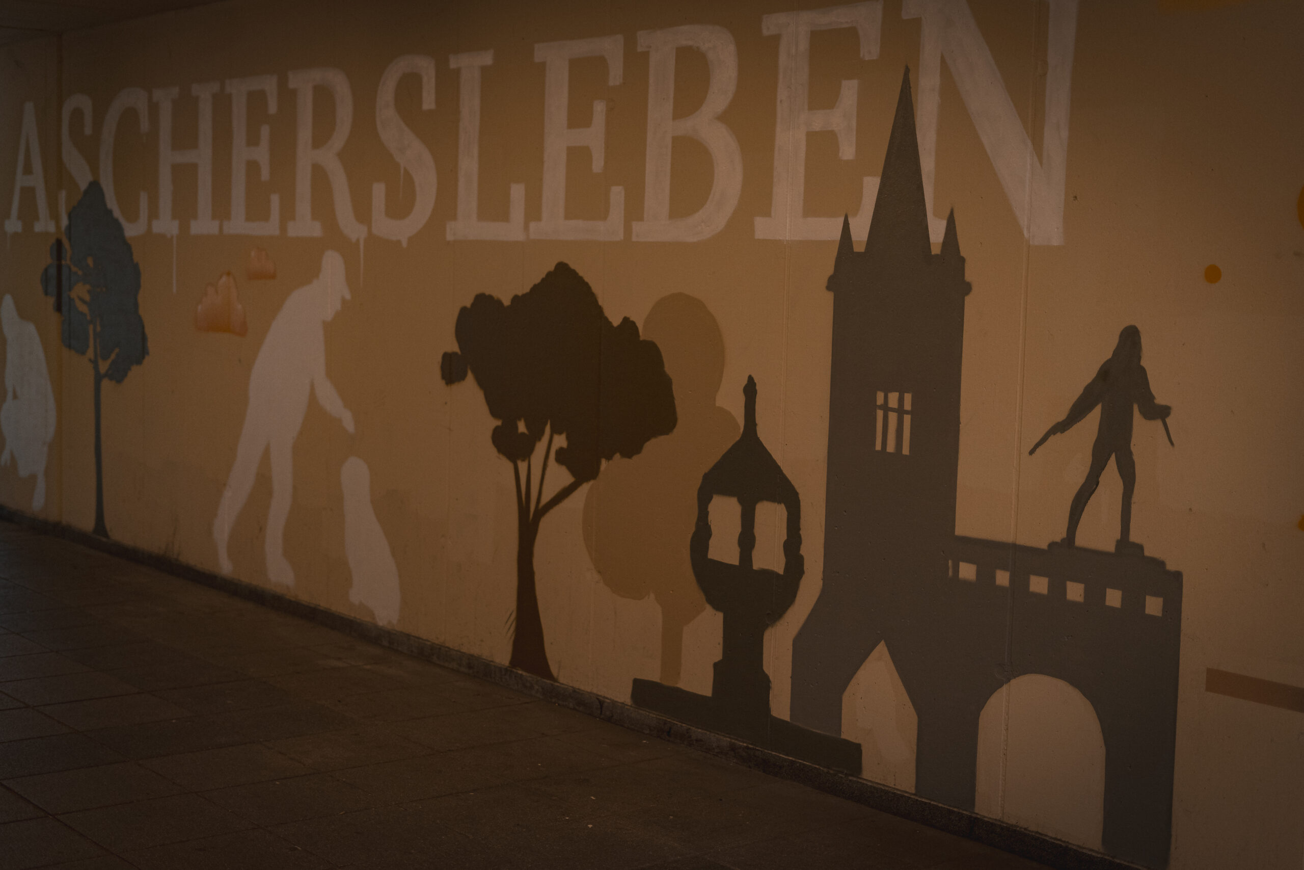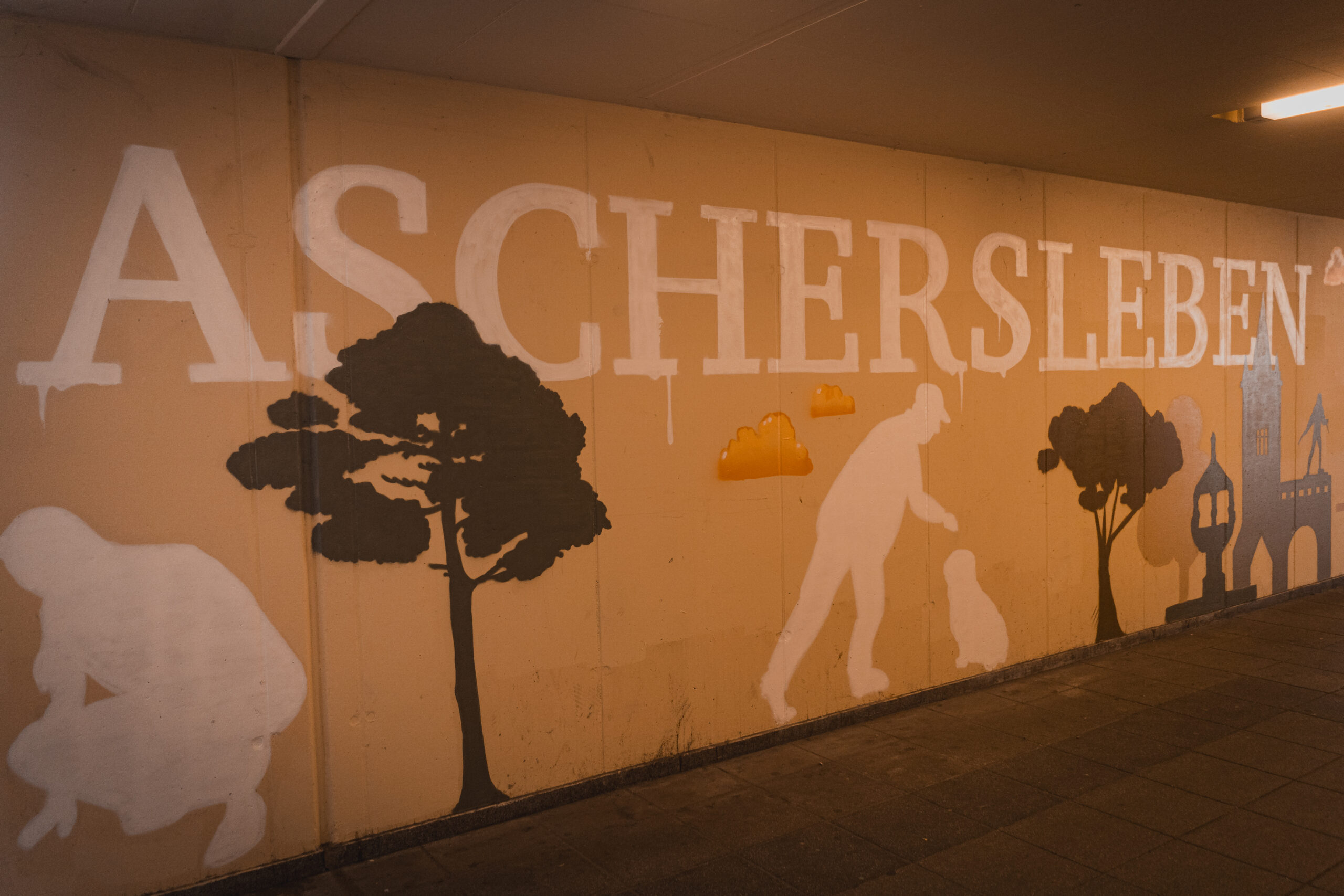 Auf Grund der positiven Resonanz der Projekts „Bahnhofsgestaltung mit dem Jugendforum“ aus 2023 entschloss sich die Bahn, auch die Unterführung gestalten zu lassen. Vorgabe war es, das selbe Farbschema zu nutzen, um ein einheitliches Gesamtbild zu erhalten. Die Motive wurden gewählt, um zu zeigen, welche Geschichte die Stadt mit der Bahn verbindet und wo man von ASL überall hingelangen kann.